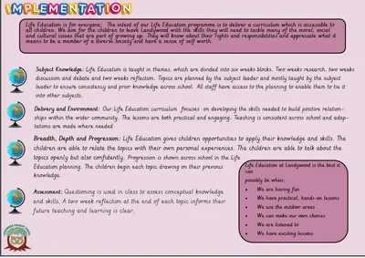 Our curriculum enables our pupils to build character and we develop determined, resilient confident learners who are responsible and caring. Children leave Landywood with a sense of pride and natural enquiry about the world, having acquired the knowledge, skills and attitudes to become successful and tolerant pupils.
