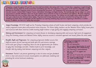 In addition to this, computing is weaved and integrated throughout our curriculum to maximise learning opportunities. Throughout school, we have iPads in each classroom and pupils also have access to an iPad scheme, where they can purchase their own iPad in school. The use of these devices throughout school enables us to use Showbie, to develop technological and computing skills, whilst also supporting and enabling cross-curricular links across the entire of our curriculum.